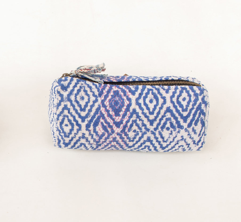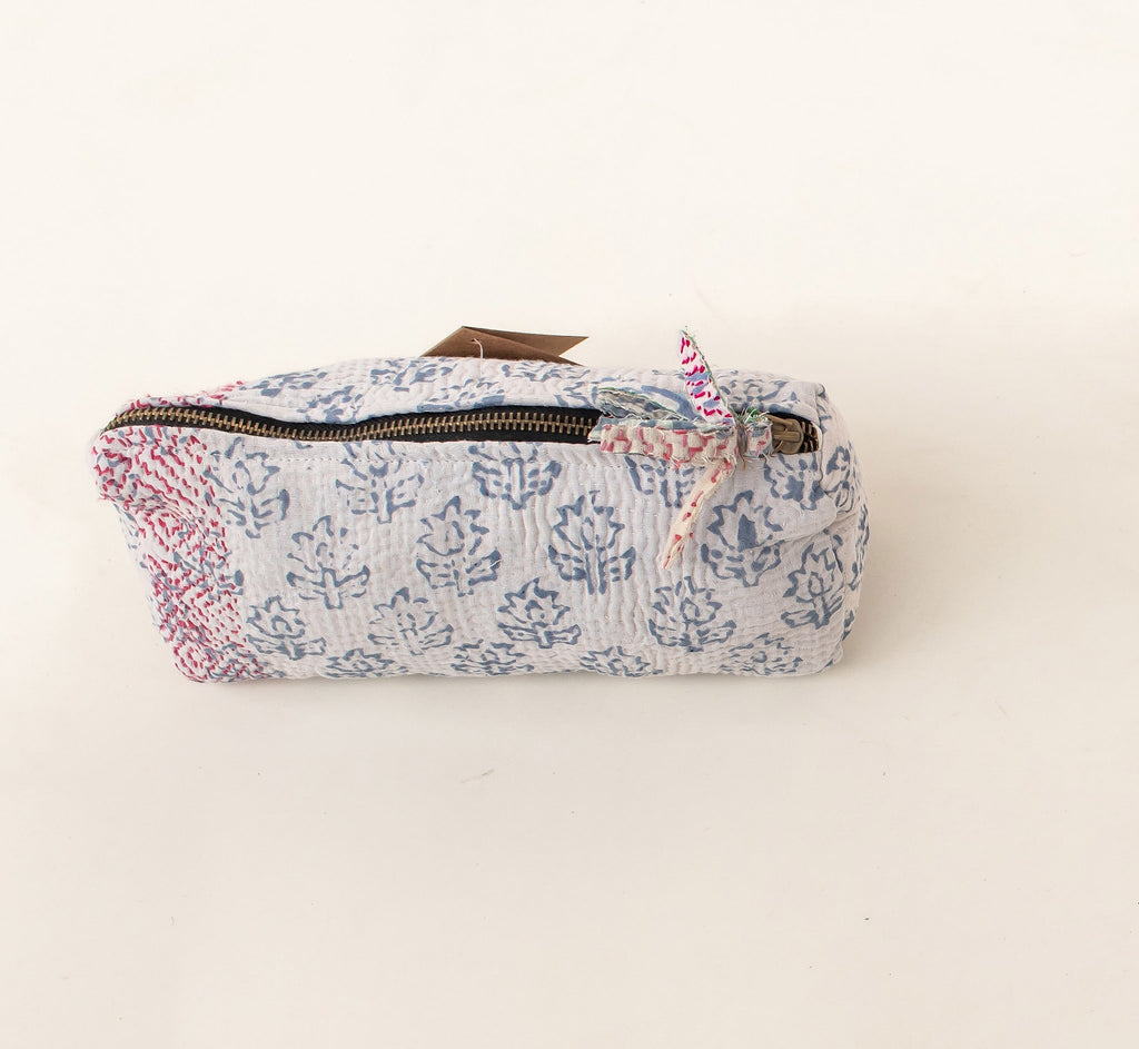 Elsker du det lyse, rolige look? Vintage Pearl er vores hvide/creme sari-pouch med fint block print. Den samler dine småting – makeup, smykker, nøgler og earbuds – og giver din taske et strejf af elegant boheme. Hver pouch er unik, så den, du vælger, er helt din egen.
