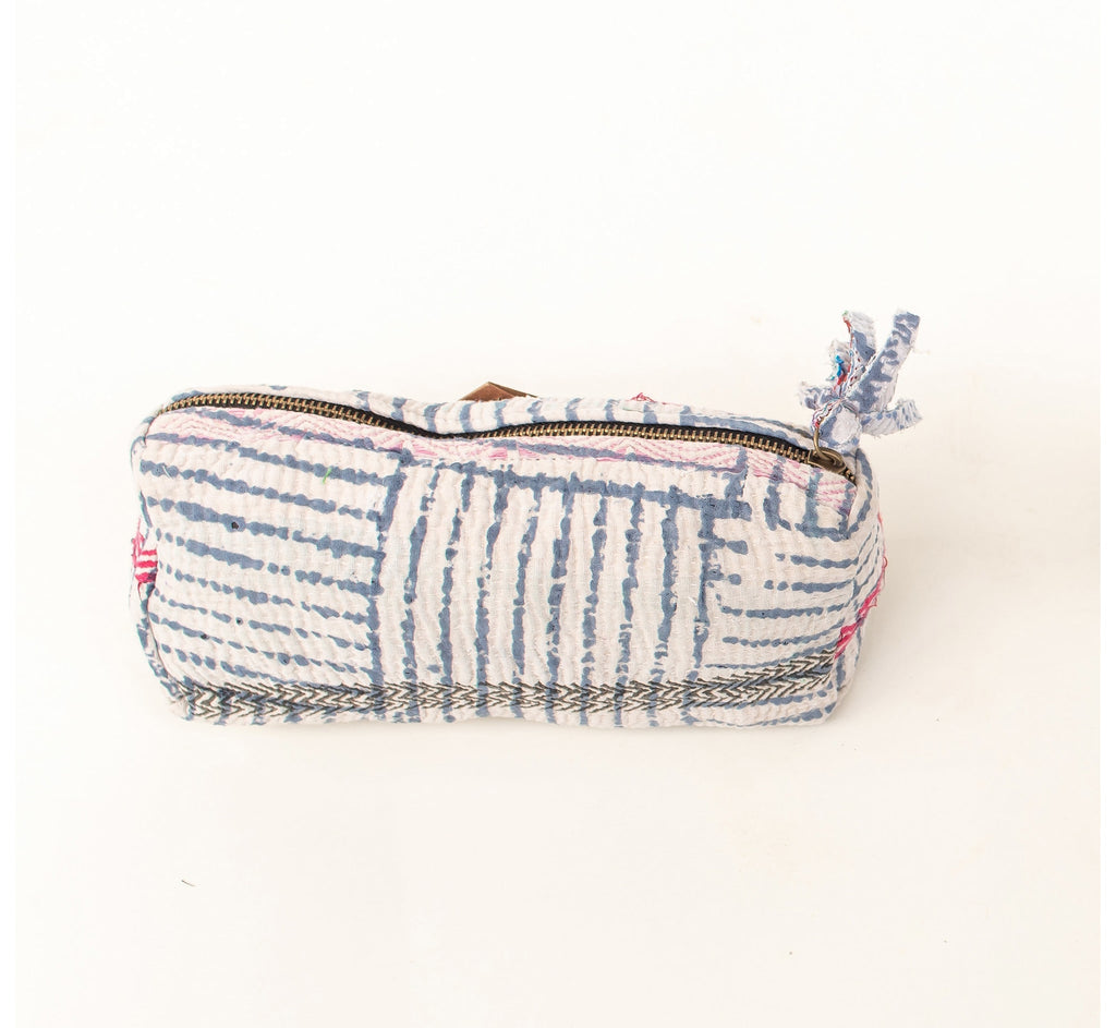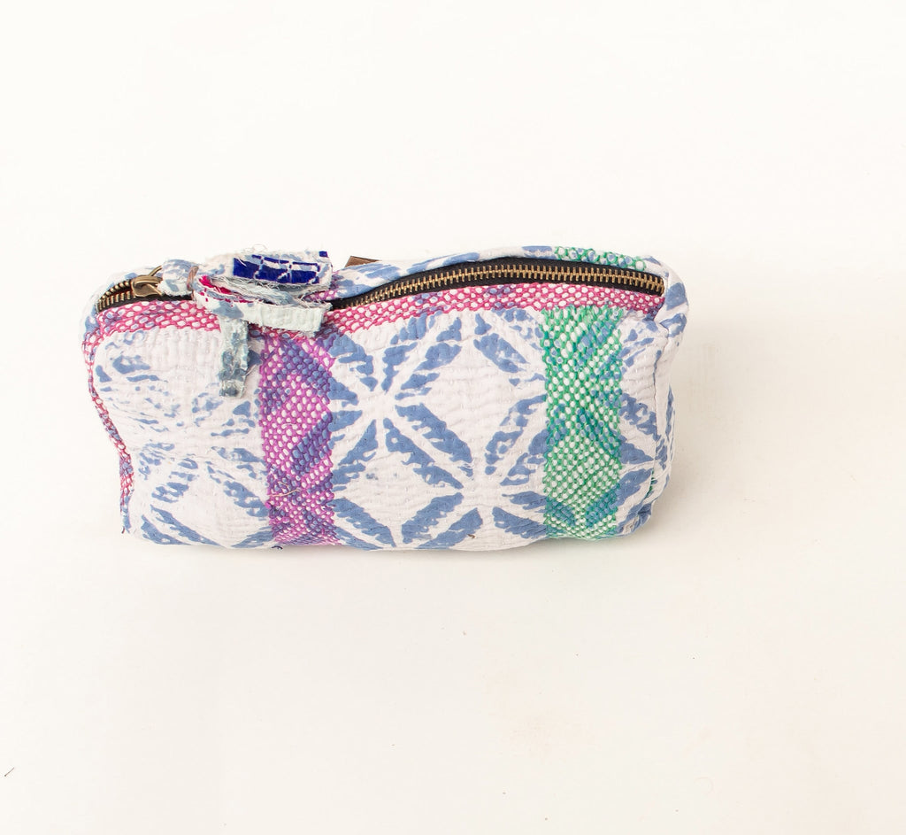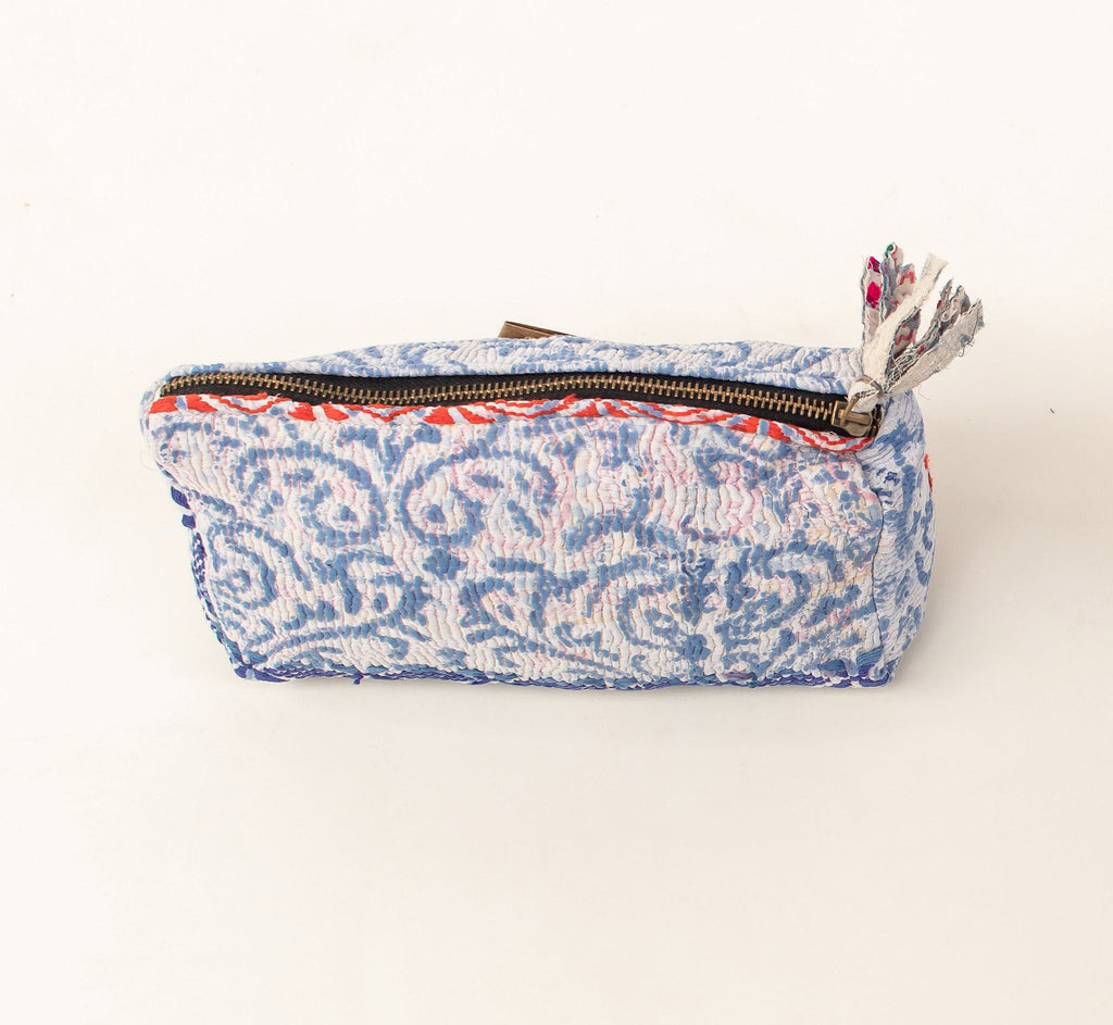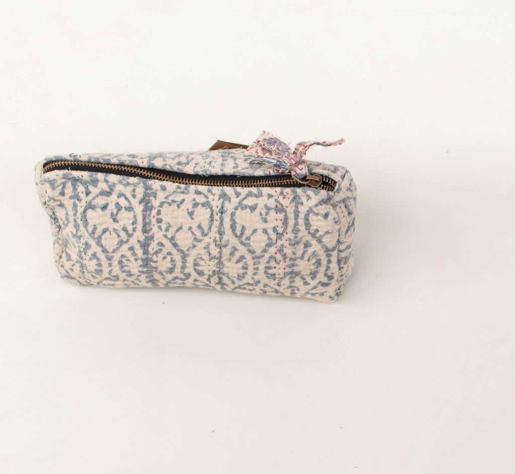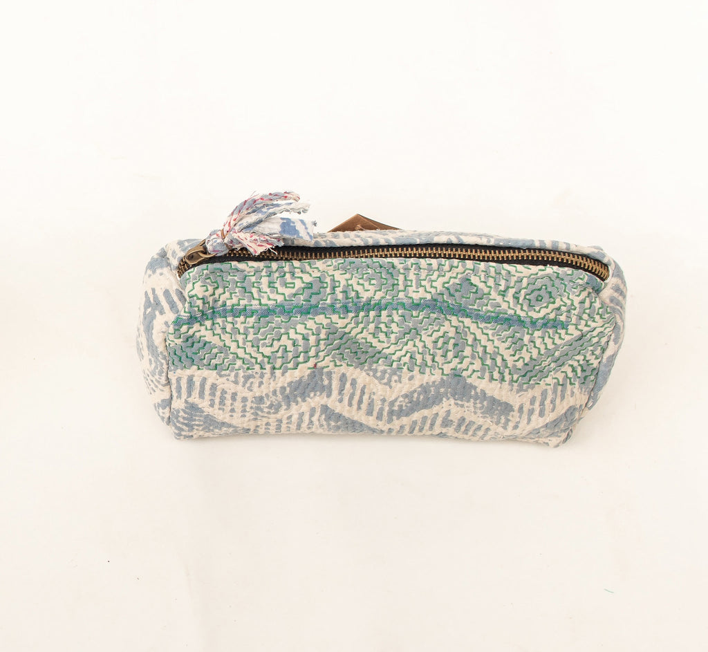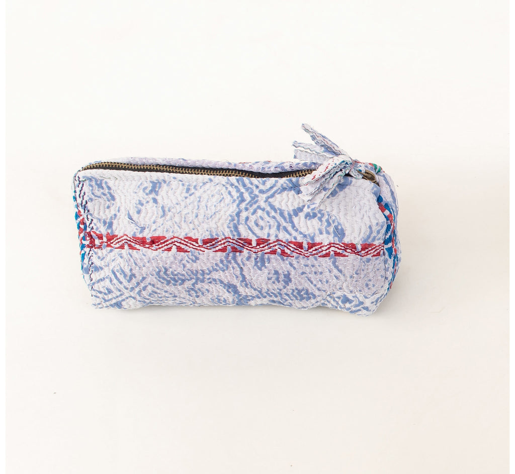 Elsker du det lyse, rolige look? Vintage Pearl er vores hvide/creme sari-pouch med fint block print. Den samler dine småting – makeup, smykker, nøgler og earbuds – og giver din taske et strejf af elegant boheme. Hver pouch er unik, så den, du vælger, er helt din egen.