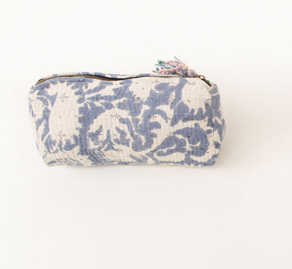 Elsker du det lyse, rolige look? Vintage Pearl er vores hvide/creme sari-pouch med fint block print. Den samler dine småting – makeup, smykker, nøgler og earbuds – og giver din taske et strejf af elegant boheme. Hver pouch er unik, så den, du vælger, er helt din egen.
