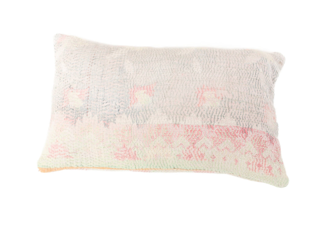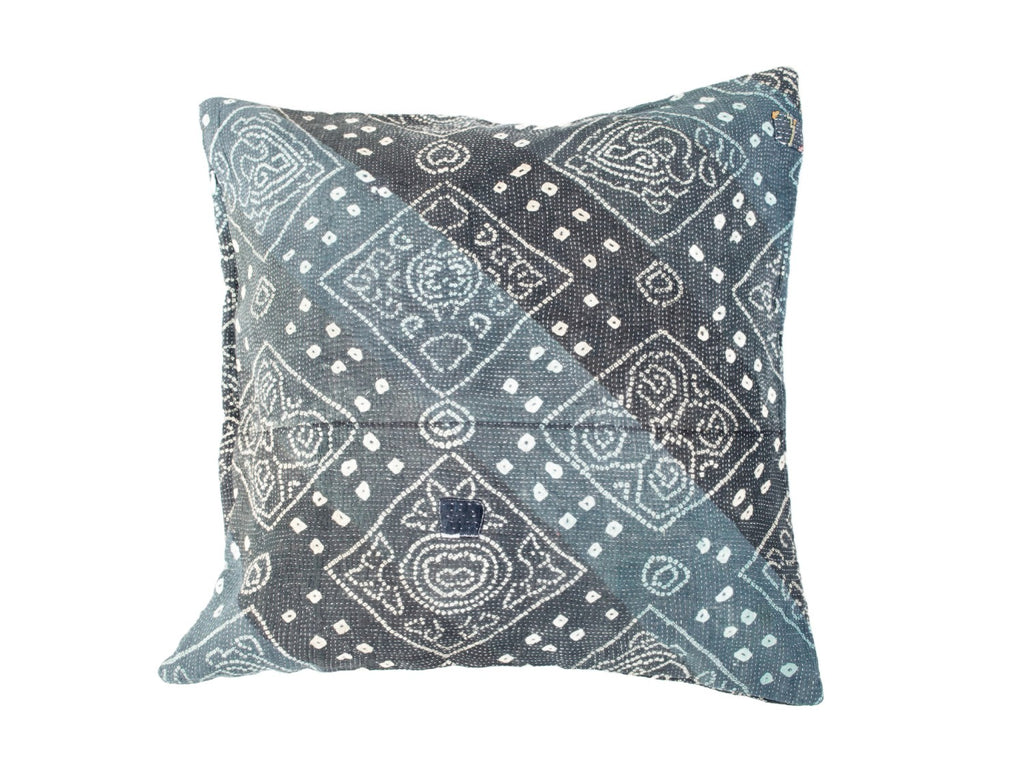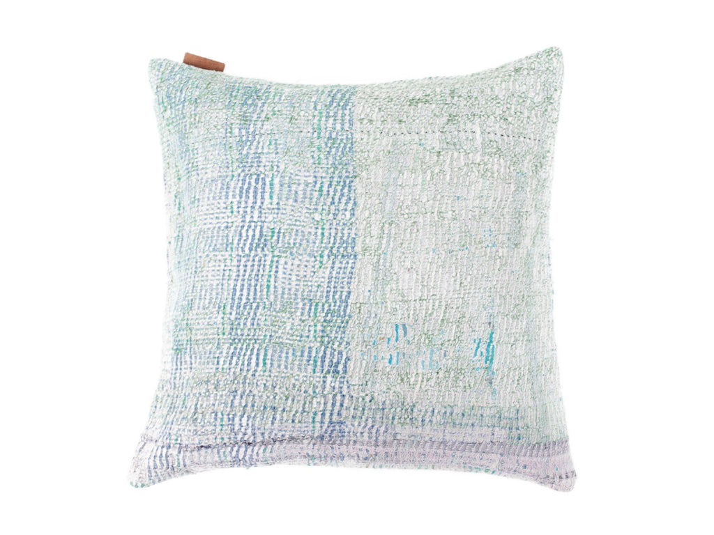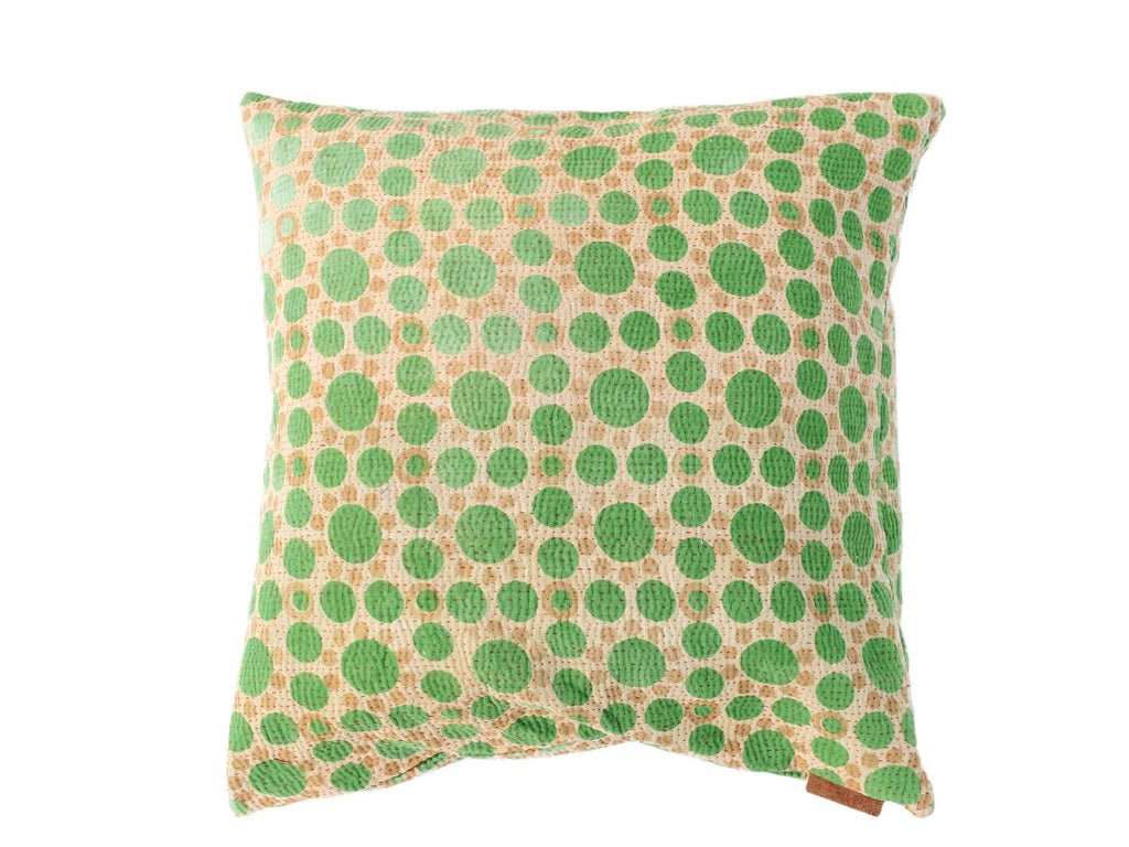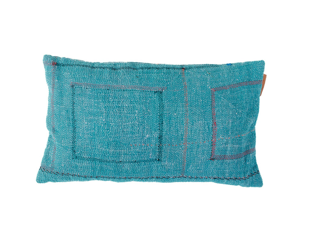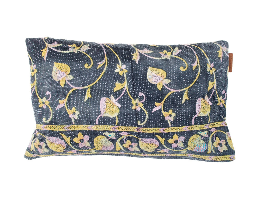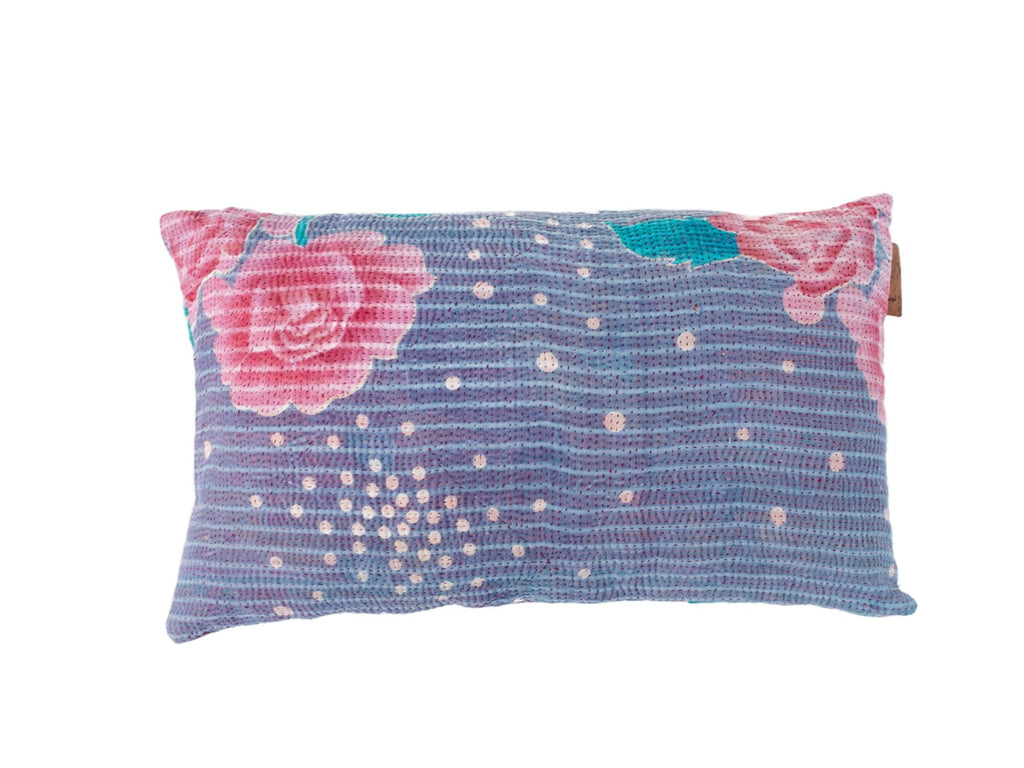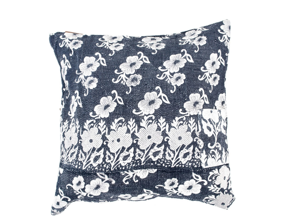 Fine Q er Sari-puder, der er produceret af en type sari, der har et andet udtryk end vores normale Sari Kantha-puder. De er lavet af tyk genbrugsbomuldssari lagt sammen med flere lag imellem og med et slidt look, hvor sarierne der er indeni er med til at give hele puden et meget råt vintage look. De er tonet ned i farver og mønstre og er syet med mindre og tættere Kantha-sømme, som giver dem et autentisk look..