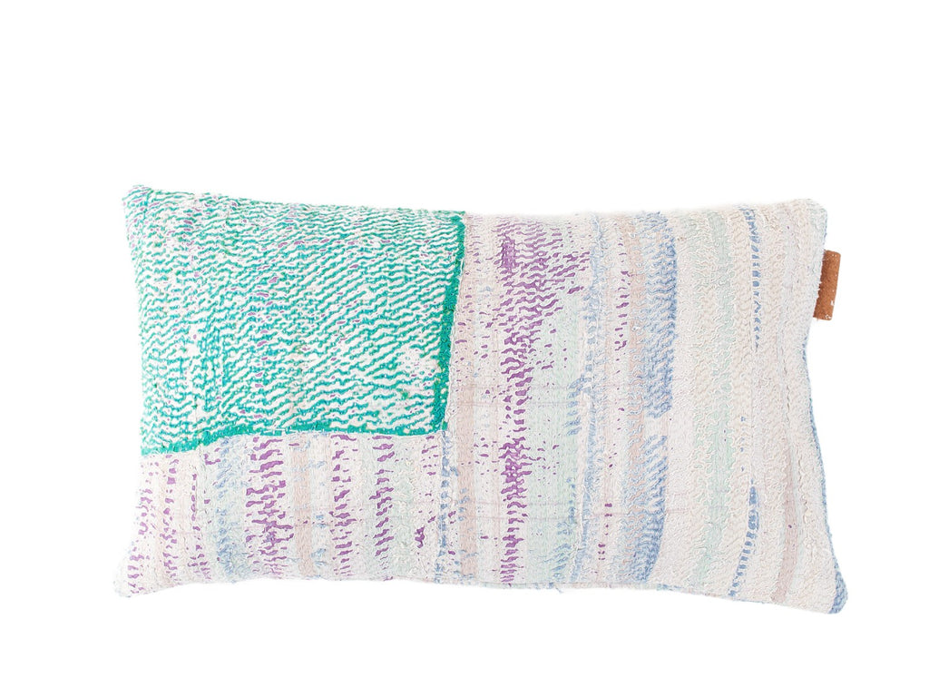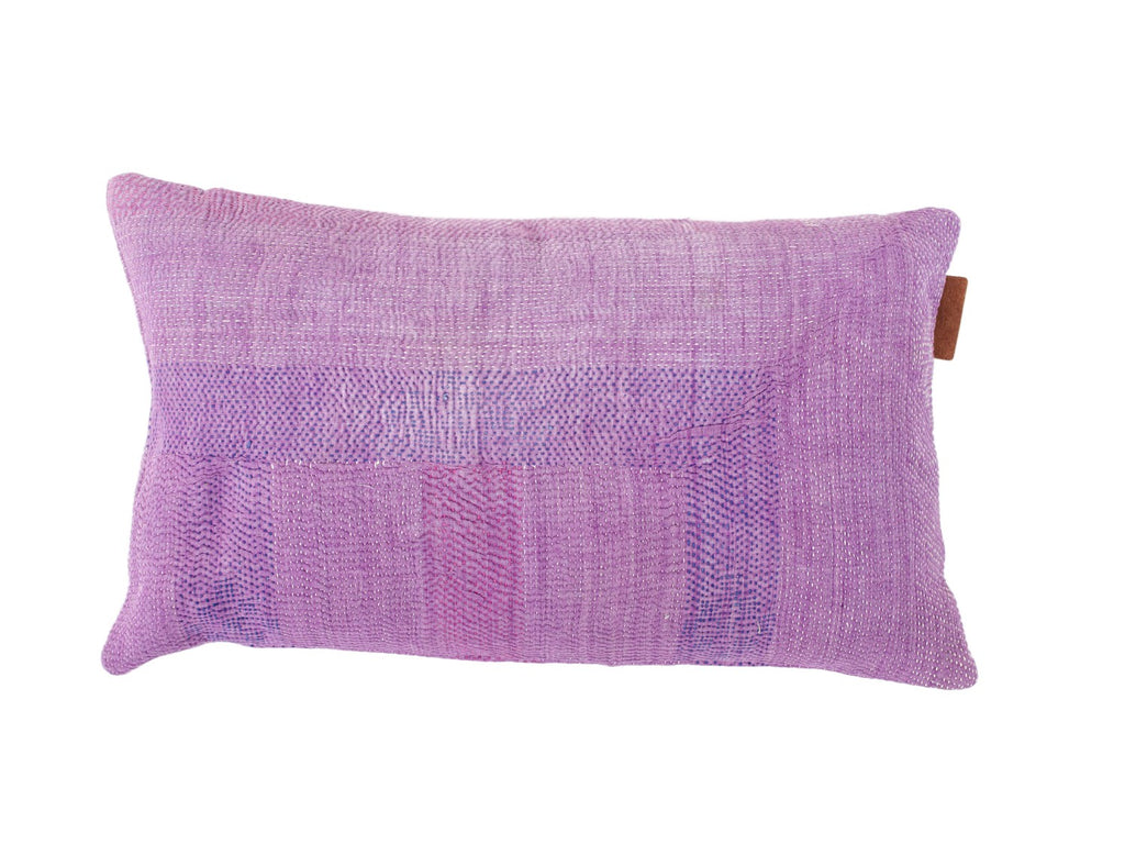 Fine Q are Sari cushions produced from a type of sari that has a different expression than our normal Sari Kantha cushions. They are made of thick recycled cotton sari laid together with several layers in between and with a worn look, where the saris inside help to give the whole pillow a very raw vintage look. They are toned down in colors and patterns and are sewn with smaller and tighter Kantha stitches, which give them an authentic look..